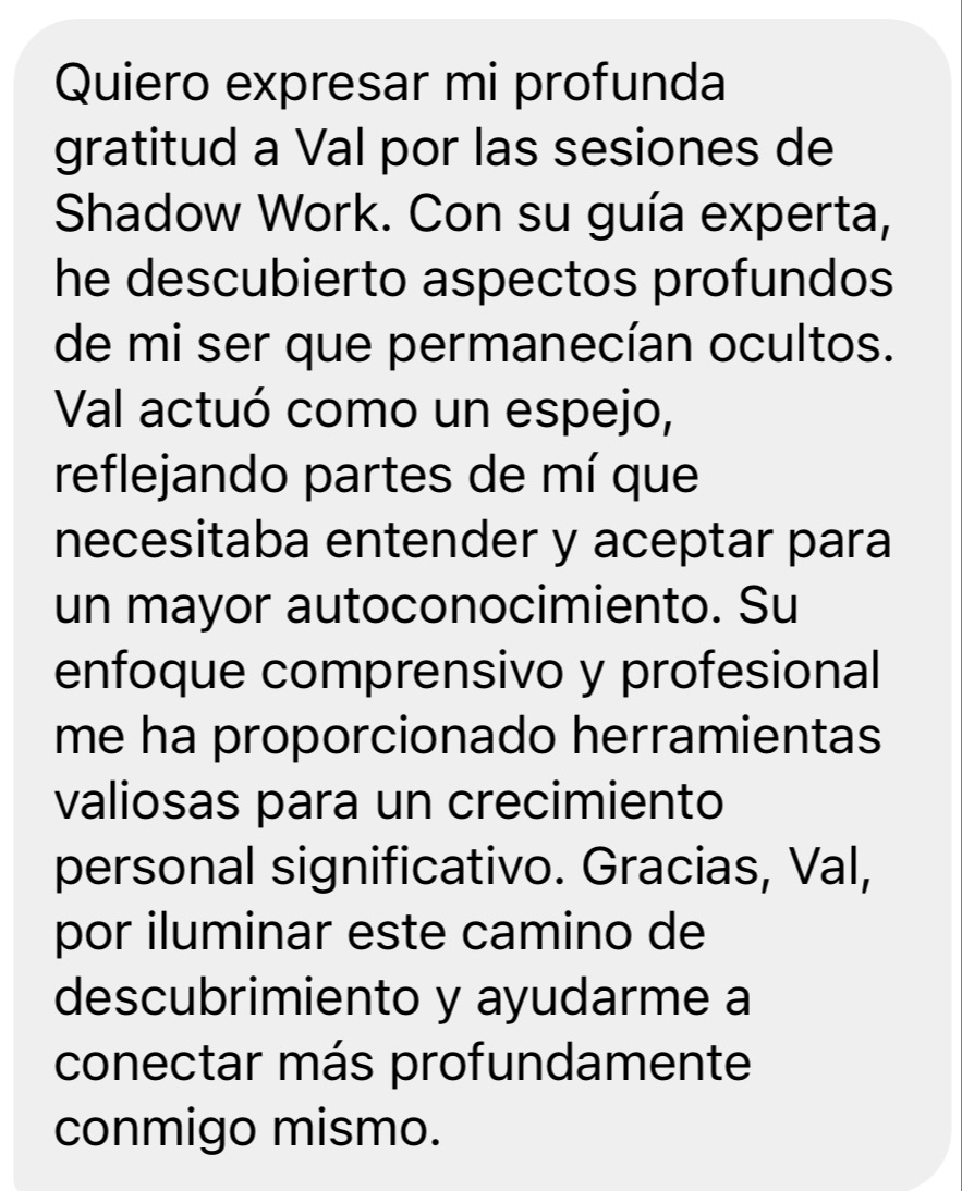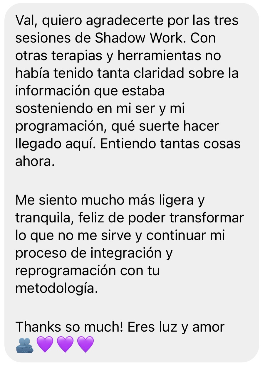 amos paso a paso revelando e integrando tu sombra, reconociendo tus patrones y creencias profundas. Es un proceso amable, profundo e intencional con una metodología comprobada que no requiere más sesiones para funcionar.