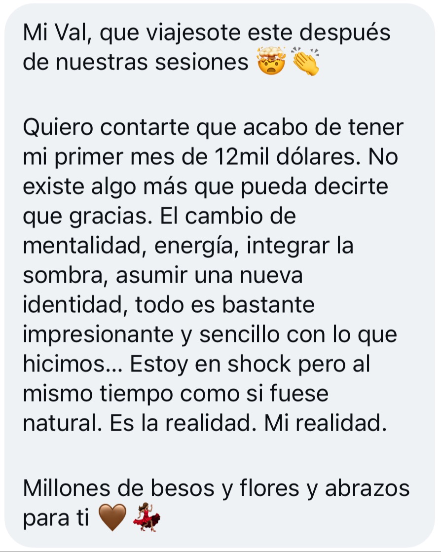 Desde que empecé a compartirlo, he logrado una expansión real en mi vida y he guiado a cientos de personas a romper ciclos profesionales, relacionales y financieros que arrastraban durante años, porque cuando cambias la identidad (programación), cambia tu realidad.